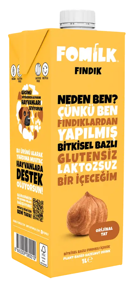 Horeca (Otel, Restoran, Kafe) işletmeleri için tasarlanan 1 litrelik ambalaj, bitkisel bazlı içecek seçeneklerinizi genişletmek için idealdir. Fomilk Fındık, özellikle çikolata bazlı içeceklerde, kahvelerde ve vegan tatlı reçetelerinde karakterini belli eden aromasıyla fark yaratır. Isıl işlemlerde stabil yapısını korur ve homojen bir deneyim sunar.