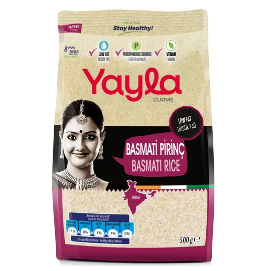 İnce ve uzun taneleri, kendine özgü aroması ve tane tane pişen yapısıyla öne çıkan Yayla Gurme Basmati Pirinç, özellikle şeflerin profesyonel mutfaklarda tercih ettiği kaliteli bir üründür. Hafif dokusu ve kolay sindirilebilir özelliğiyle pilav, garnitür, salata ve dünya mutfağına ait tariflerde mükemmel sonuç verir. 500 gramlık ambalajı ile daha küçük ölçekli kullanımlar için uygundur ve otel, restoran, kafe ve catering mutfaklarında pratik bir çözüm sunar.